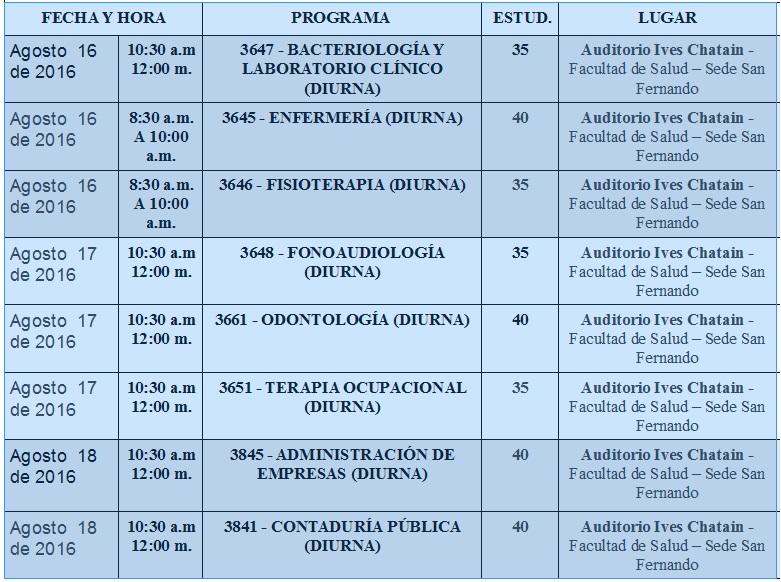 La inducción se realizará en las siguientes fechas: